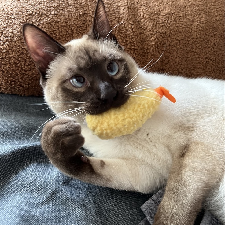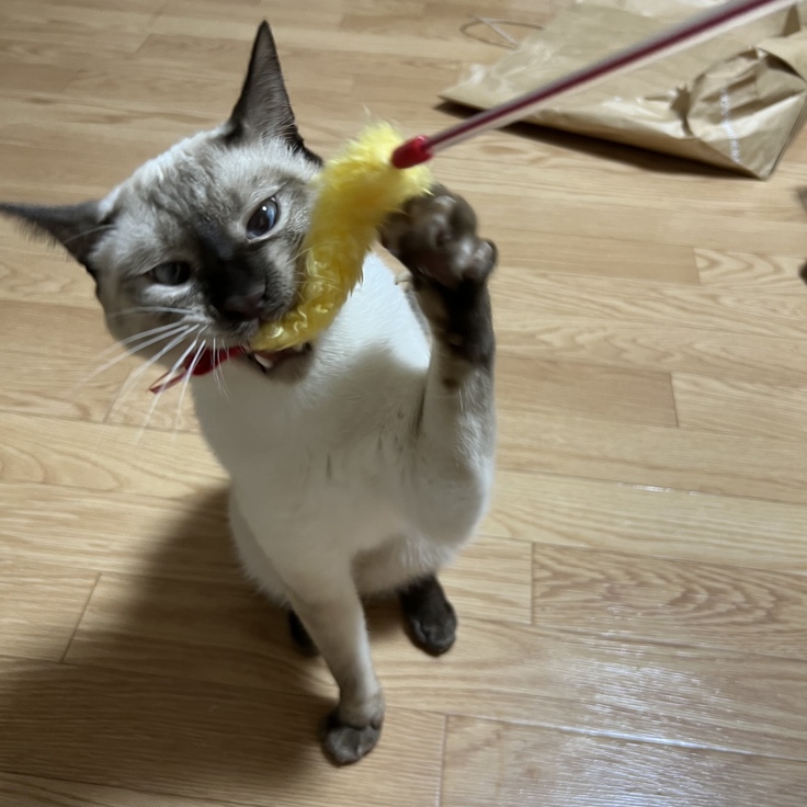 投薬7日目の海です。今まで反応しなかったおもちゃにも反応するようになり、餌を出す音が聞こえると走って寄ってくるようになりました!
