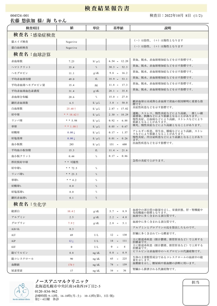 待てないと判断した私達はすぐにFIP協力病院へ連絡したところ、優しく受け入れてくれました。
