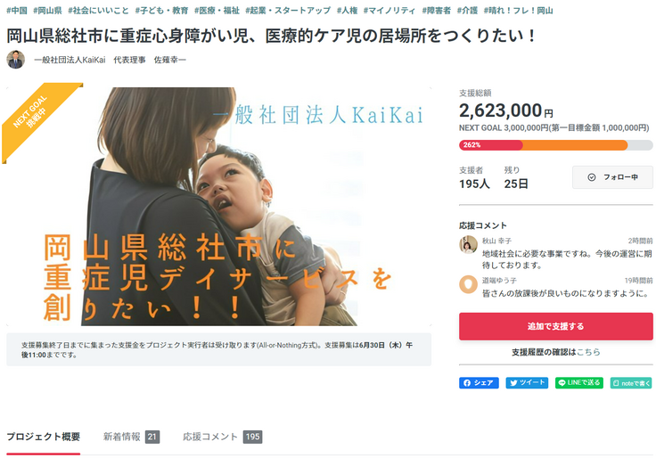 いよいよ、「支援者人数200人」の大台に近づいてきました!