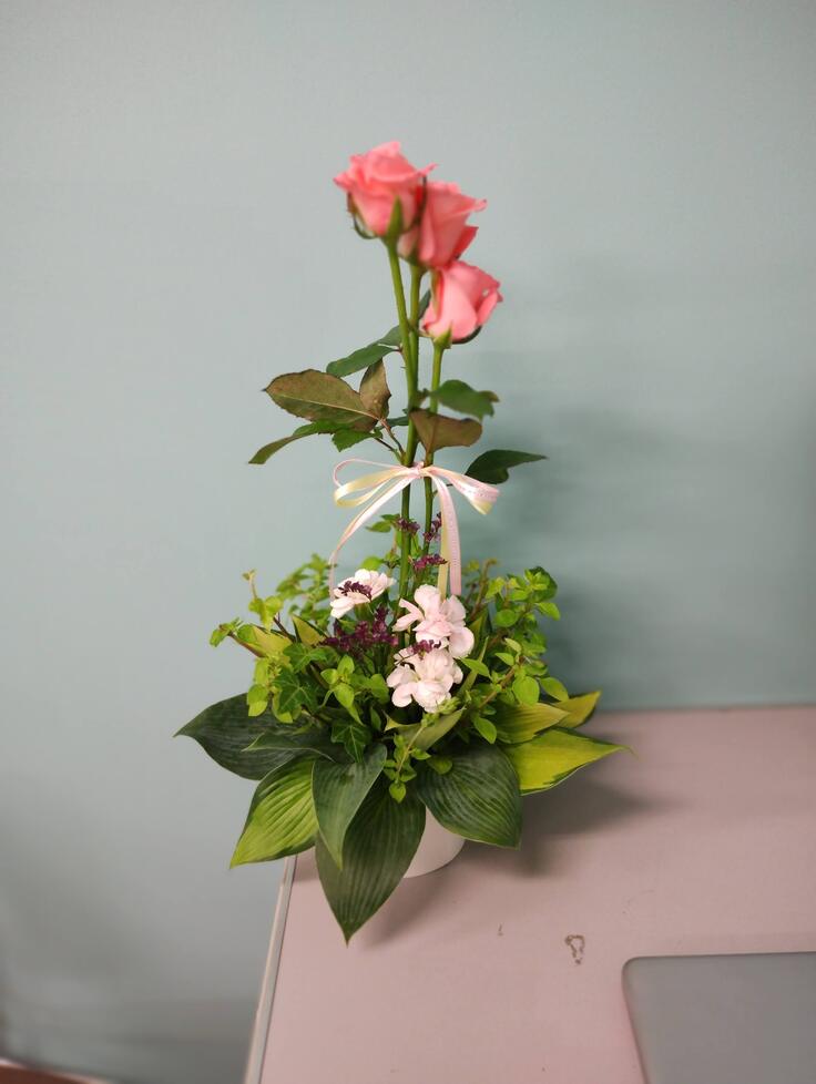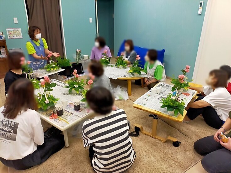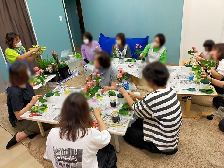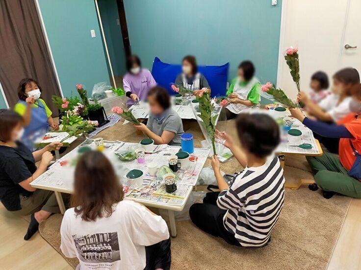 お花と言葉でつなぐフラワーアレンジメント教室も併せて行われ、保護者の方だけではなく、スタッフも参加して和気あいあいと開催することができました。