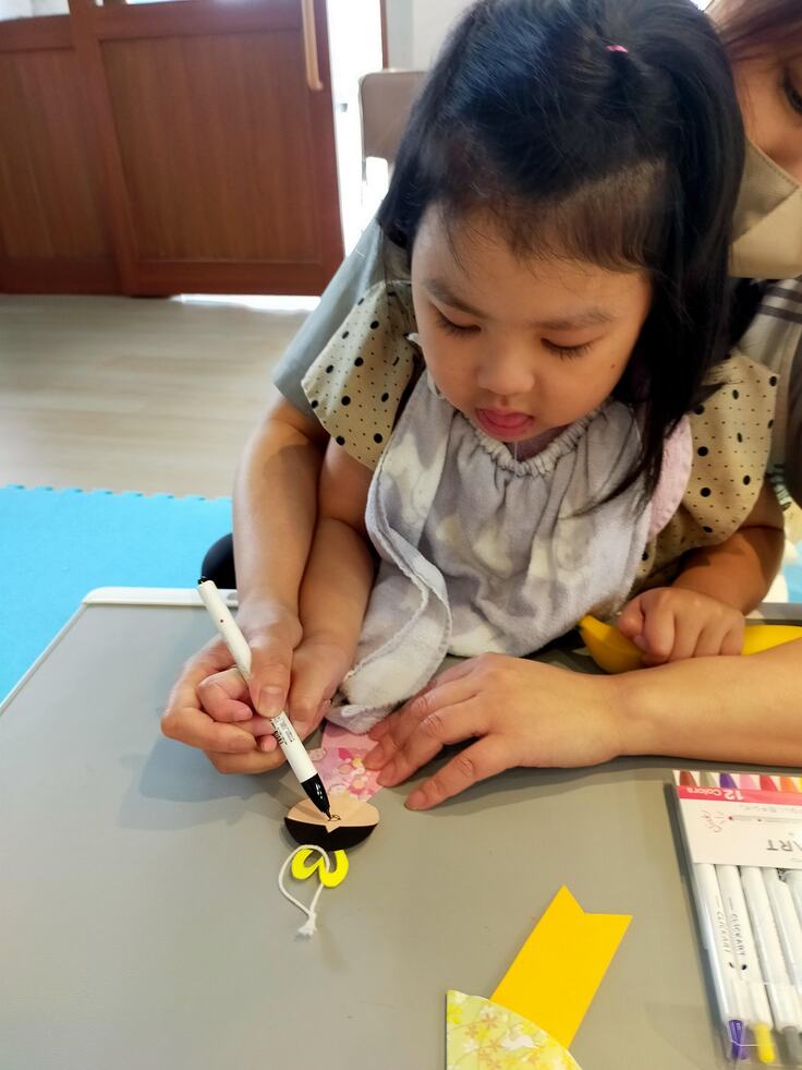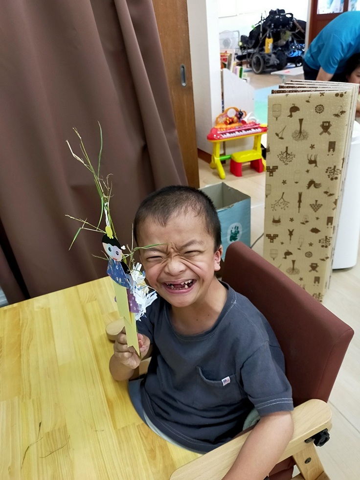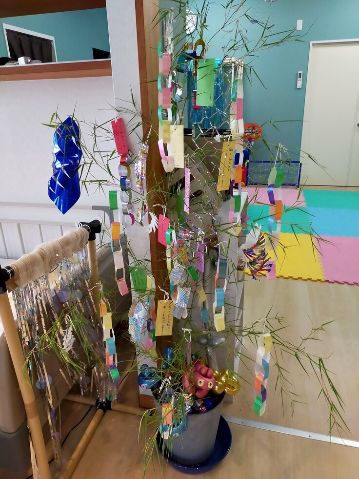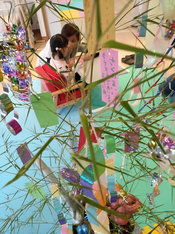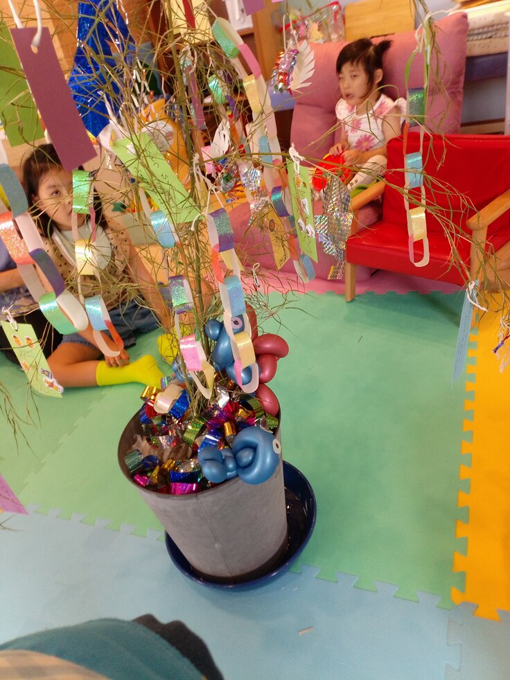 七夕が近づいてきたので、みんなで短冊にお願い事を書きました。