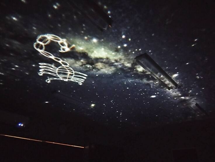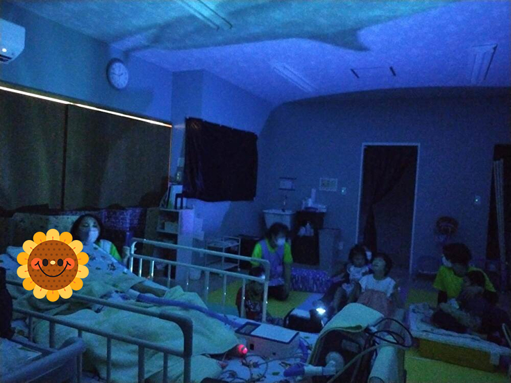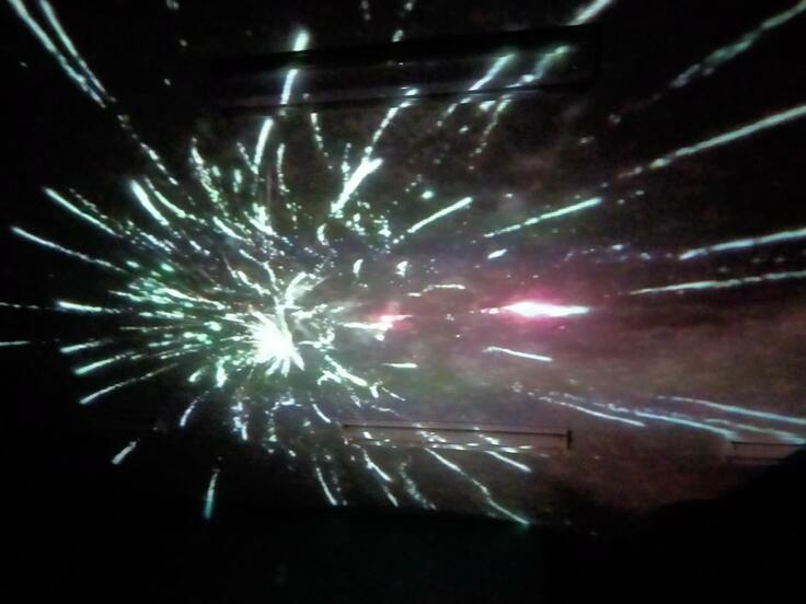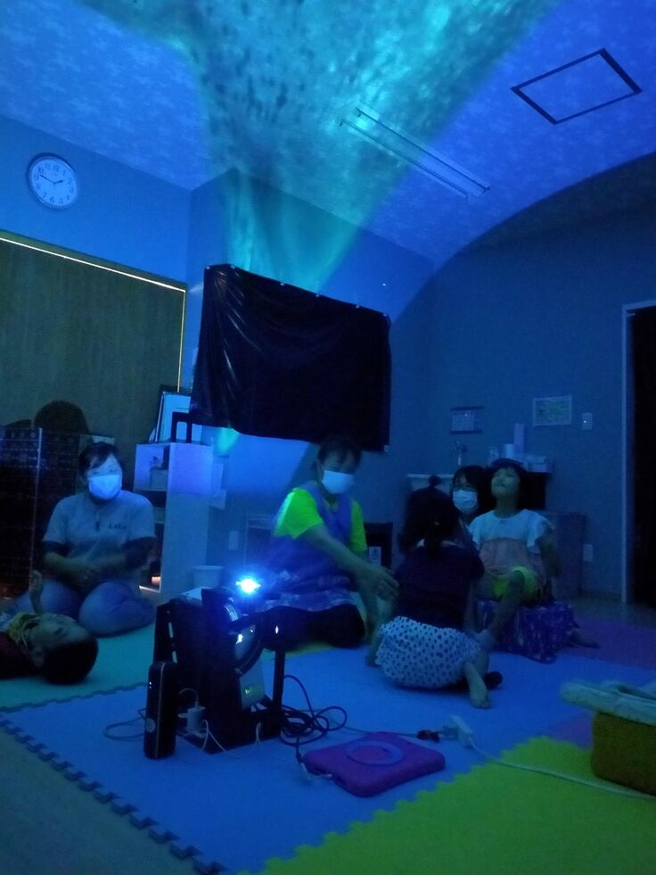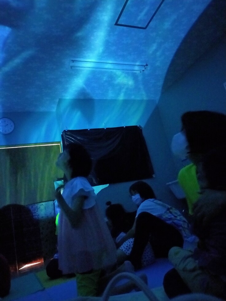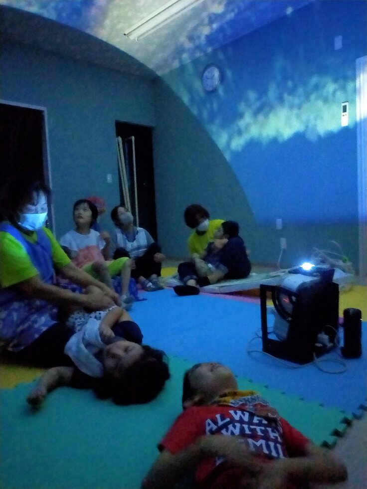 早速、本日上映したのですが、予想以上の迫力にみんな興味津々で天井に浮かぶ星空を眺めていました。