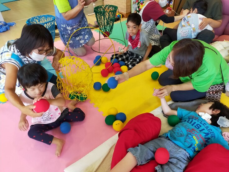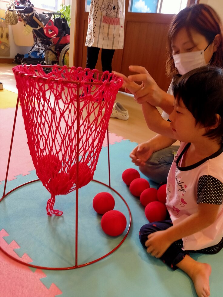 色とりどりの掴みやすい玉なので、みんなとても興味をもって遊ぶことができました。