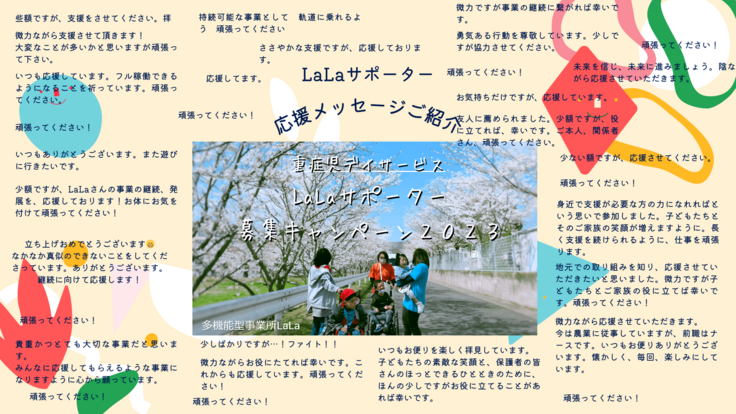 是非、下記URLからLaLaサポーターにご登録いただいて、「多機能型事業所LaLa」の存続の後押しをしていただけないでしょうか。