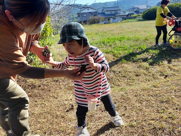 松ぼっくりを拾ったあとは、隣にある公園でブランコや滑り台、またがる遊具などで遊びました!