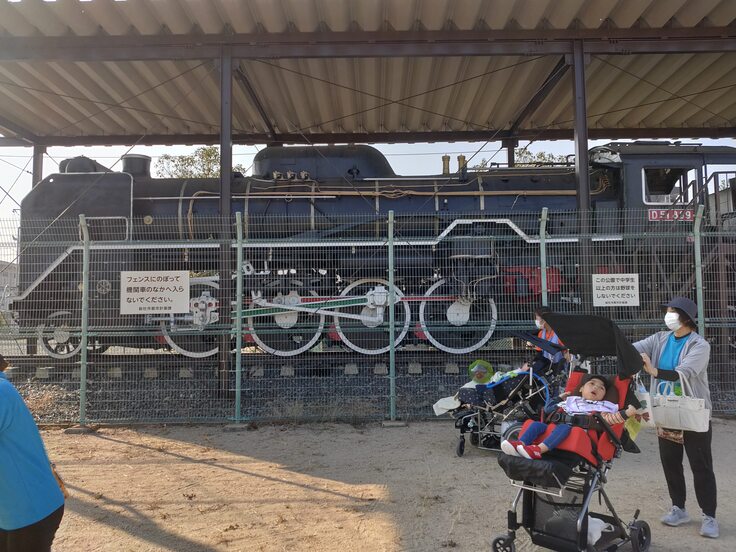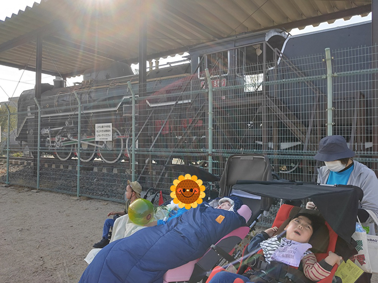 今日は天気が良かったので、総社市内にある、蒸気機関車が展示されている石原公園に遊びに行きました。
