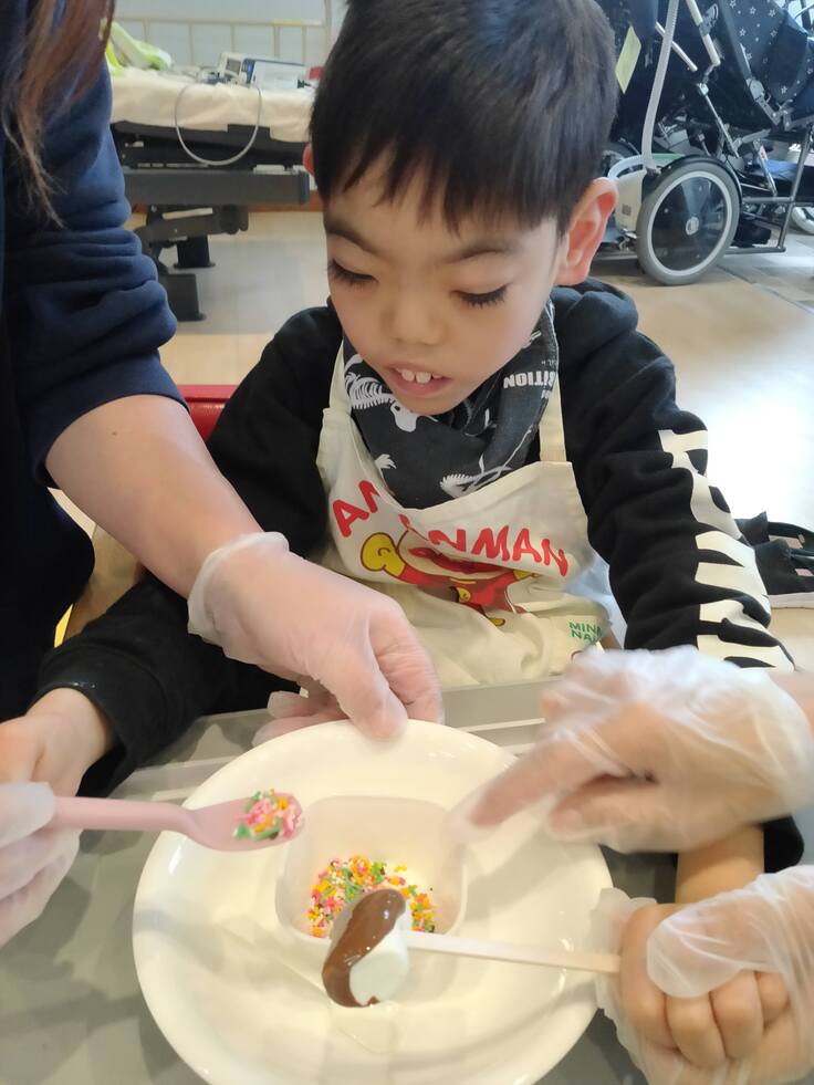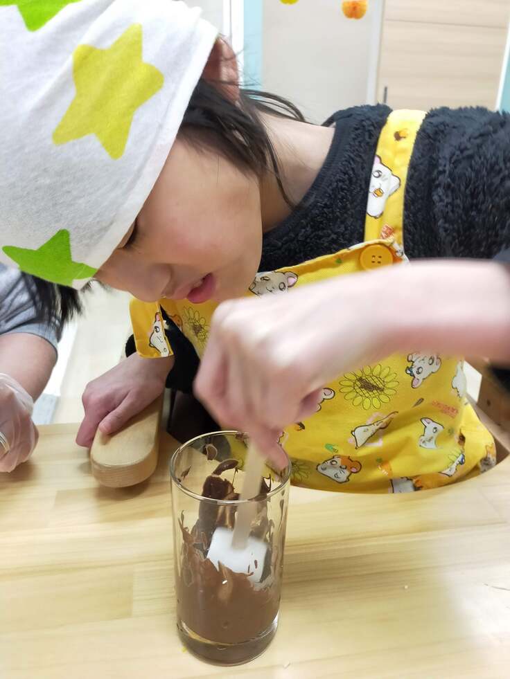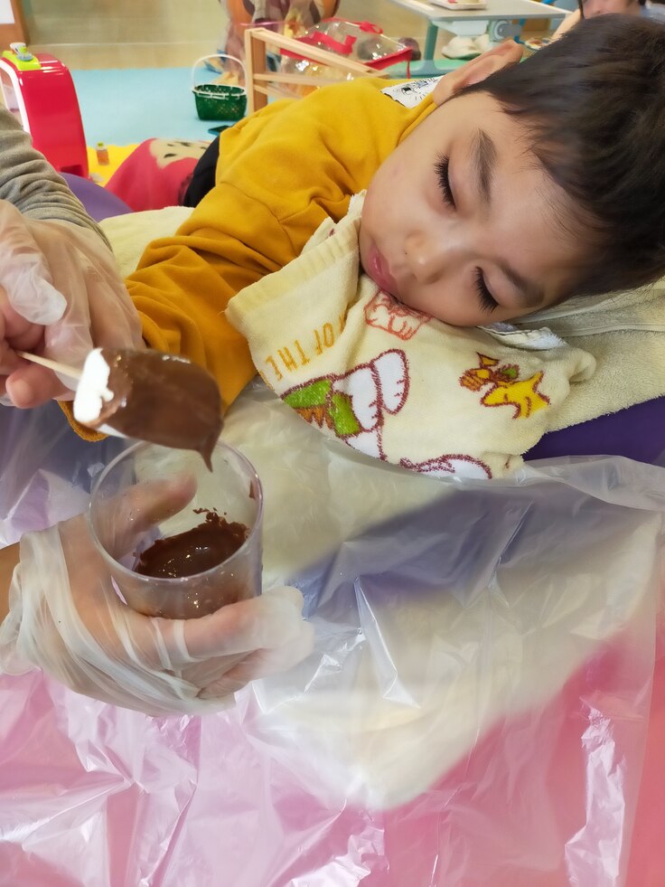 バレンタインデー週間ということで、今週はみんなでマシュマロチョコの制作を行いました。
