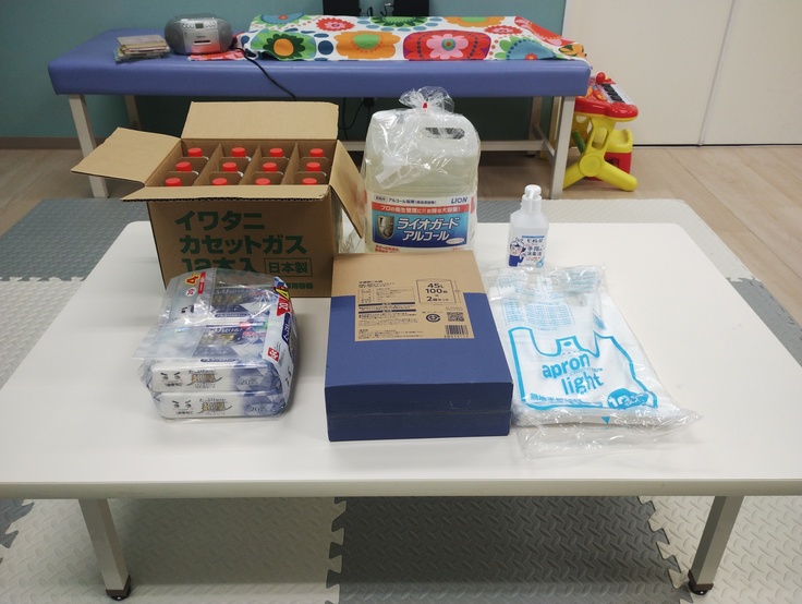 アマゾンほしいものリストより、カセットガス、アルコール消毒液、ポンプ消毒液、ウエットシート、ゴミ袋、レジ袋をご寄贈いただきました。