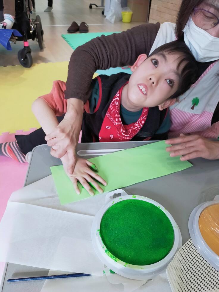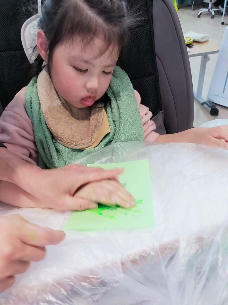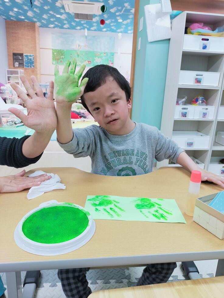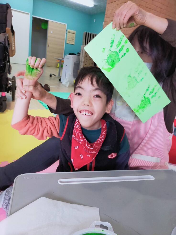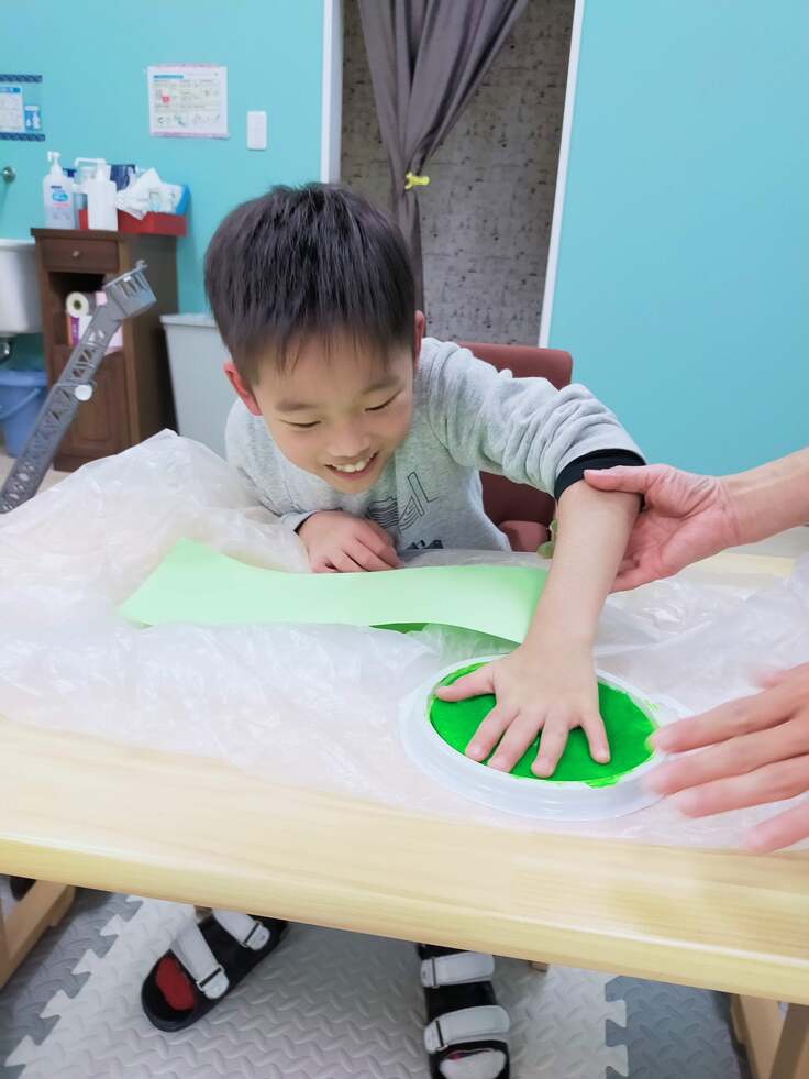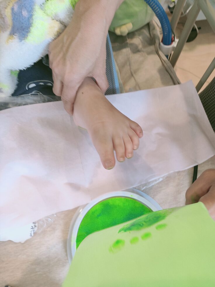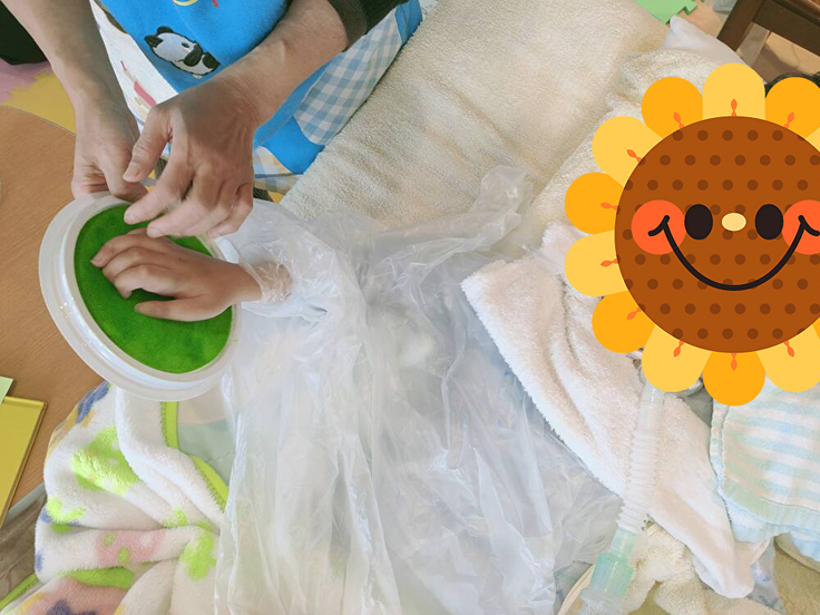 冷たいスタンプ台が手や足に付いた時は少しびっくりしましたが、形がとれた時はとても嬉しそうでした!