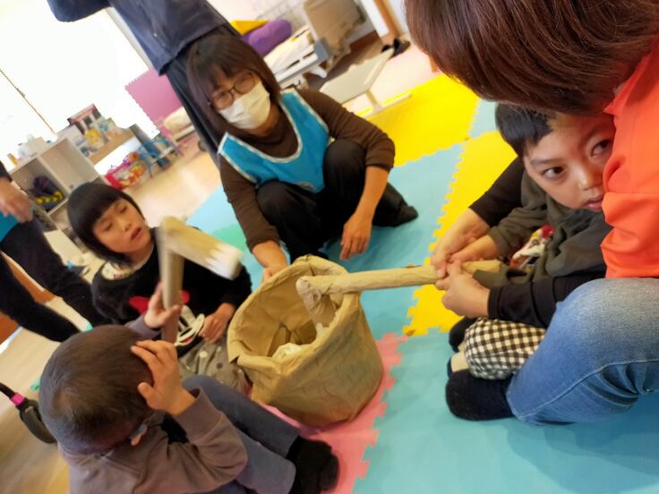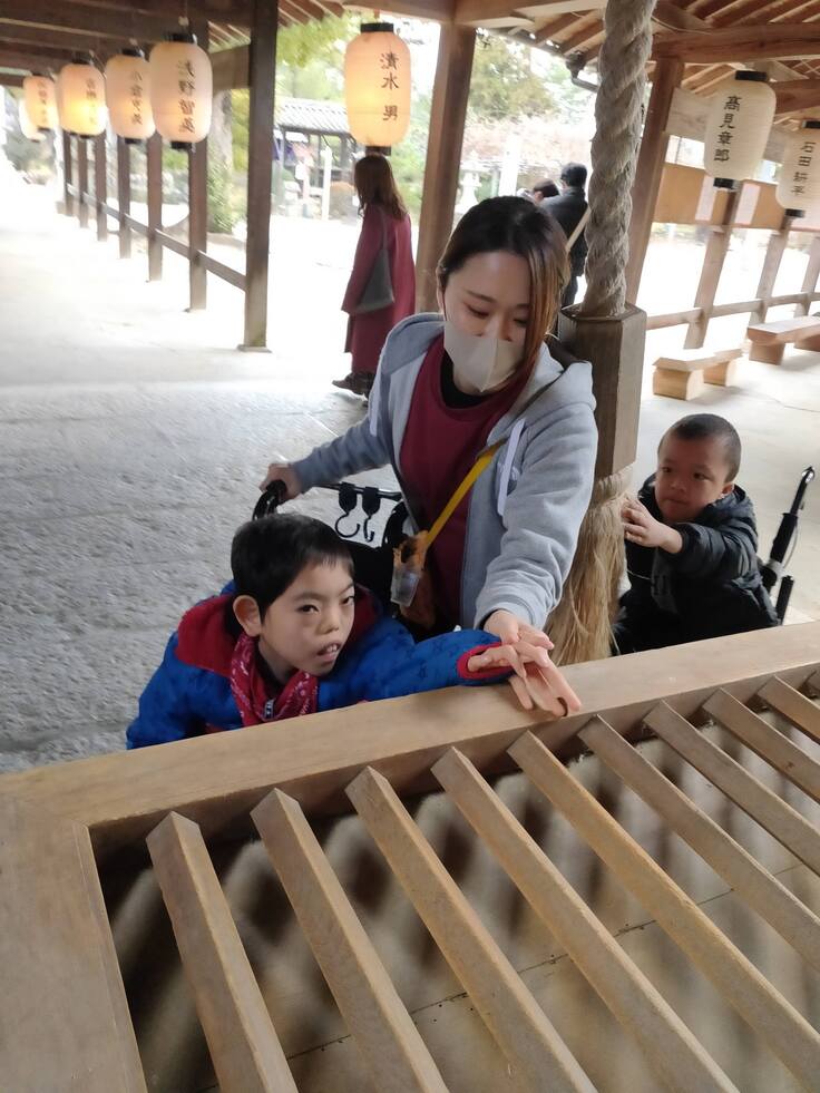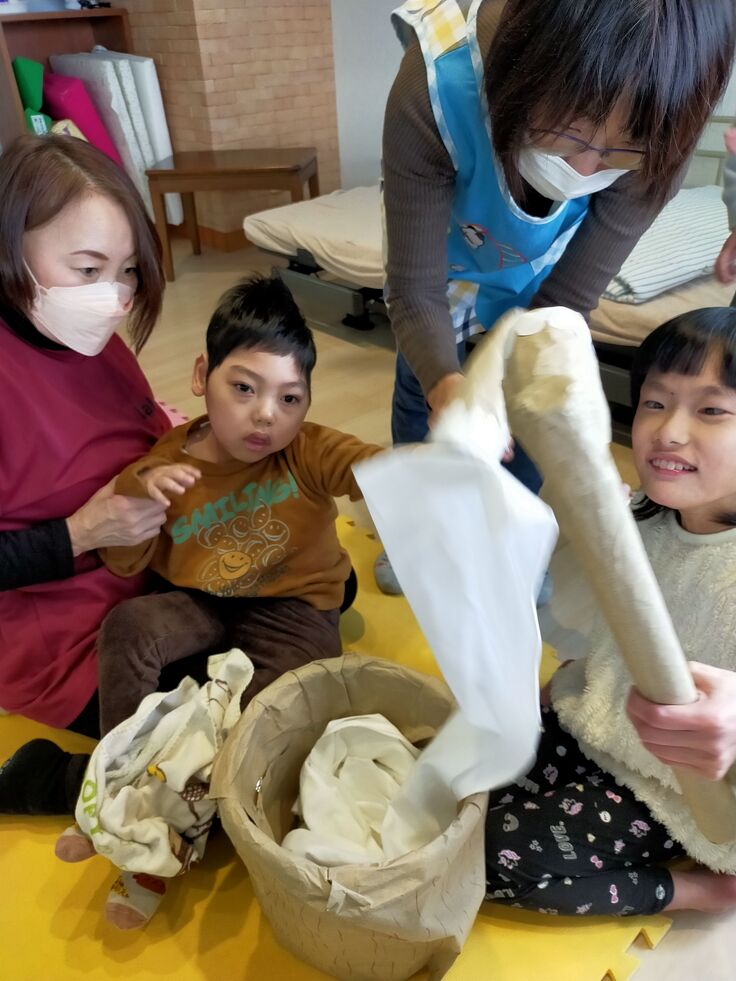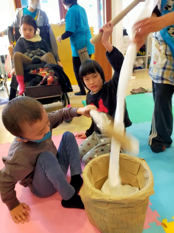 お餅つきや、別の日には総社宮に初詣に行ったりなど、お正月ならではの活動もしています。