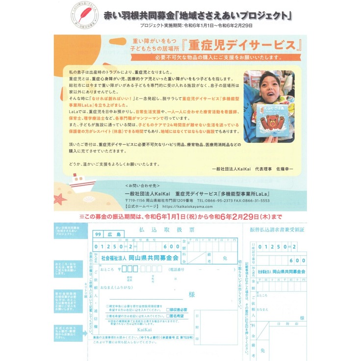 また、2024年1月1日~2024年2月29日まで、赤い羽根共同募金「地域ささえあいプロジェクト」に参加しています。