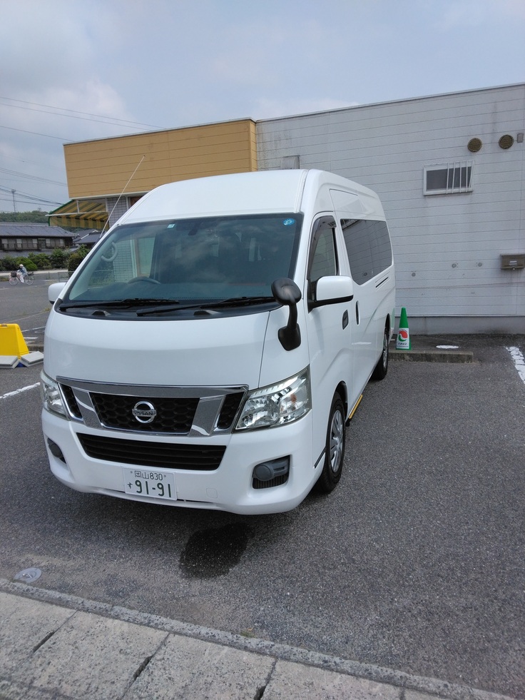 現在は、以前のクラウドファンディングでご支援頂いた資金で購入した、車いす2台を乗せることが出来る福祉車両1台(日産 NV350キャラバン)で送迎をしています。