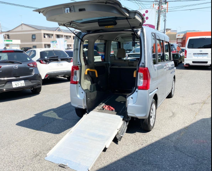 スロープ車になっており、車いす1台がそのまま乗り込めます。軽自動車なので、大きい車が不安な方でも運転することが出来ます!