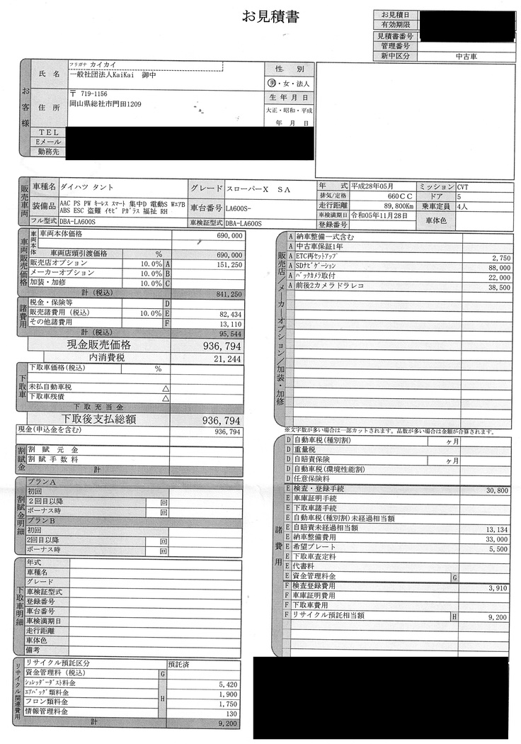 9万キロ、7年落ちで修復歴がある軽自動車ですが、ナビやドラレコ等をつけると100万円弱という金額になります。