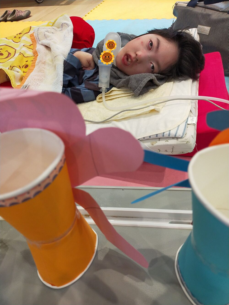紙コップやペットボトルで作った的に向けて発射して、見事倒す事ができました!