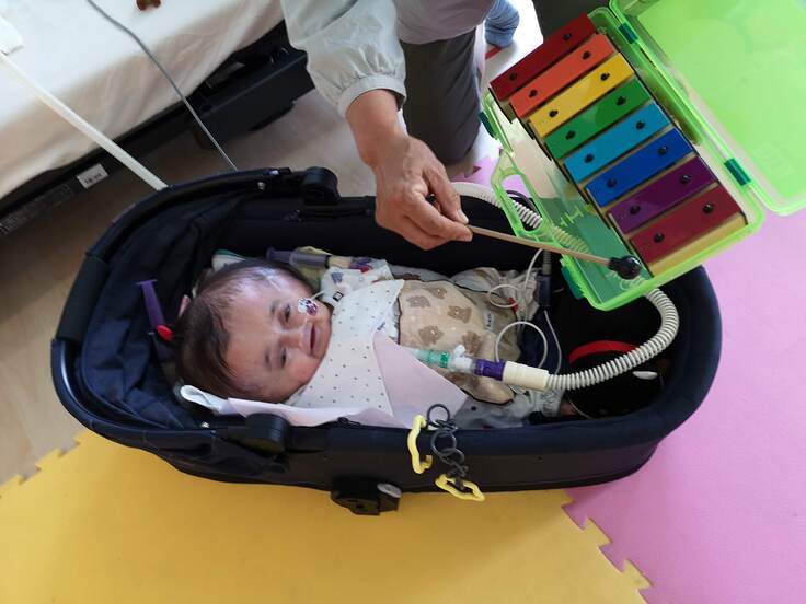 音楽活動中は不安そうな顔をして、いつもスタッフの手を握っている女の子。