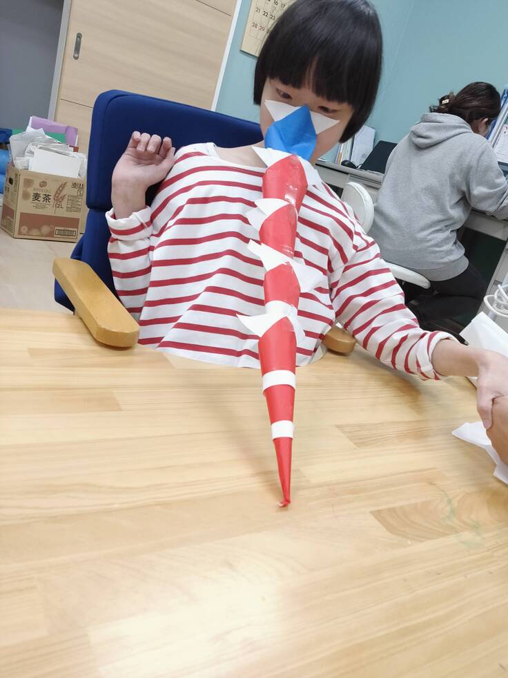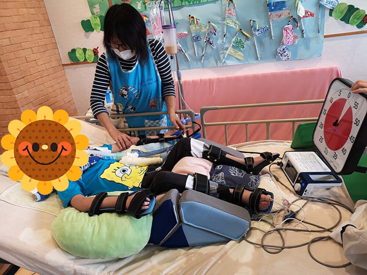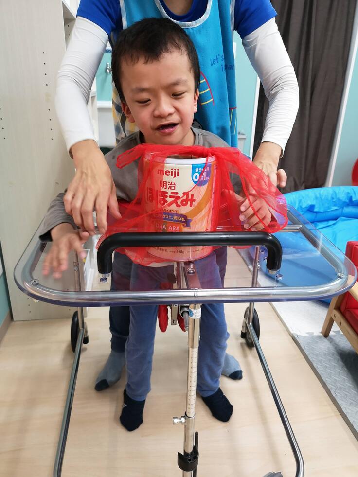 ご寄付を活用し、電子体温計、バンビーナチェア、SRCウォーカー、タイムタイマーの購入代に、また、電池で動く玩具を、指の微細な動きを検知できるスイッチと連動できるようにするための改造代に充てさせていただきました。