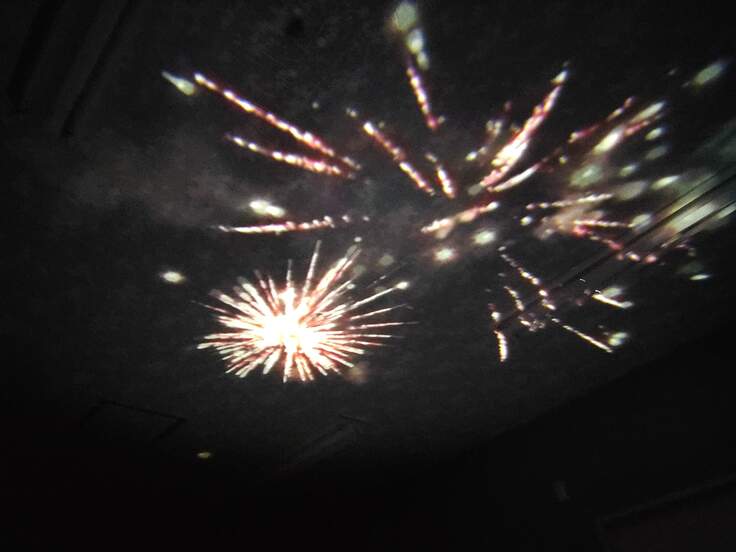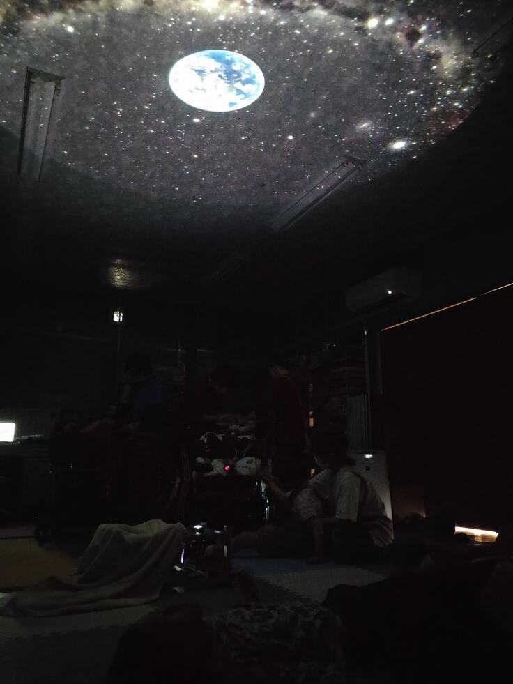LaLaでは機材到着後、7/22-7/26に部屋を真っ暗にして星空をはじめ、星座、花火、イルカなどの投影を行い、この1週間はプラネタリウム三昧でした(笑)