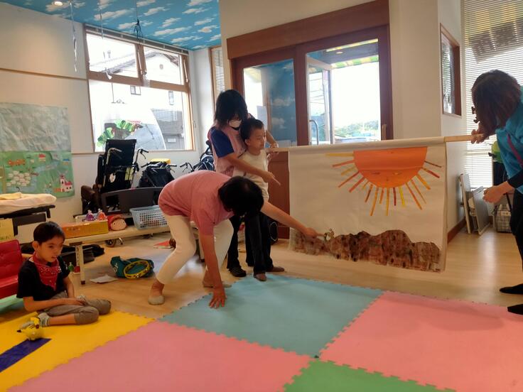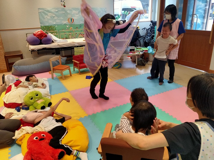 楽器を鳴らしてみたり、スタッフが蝶々になって舞ってみたり、とても楽しく過ごせました。