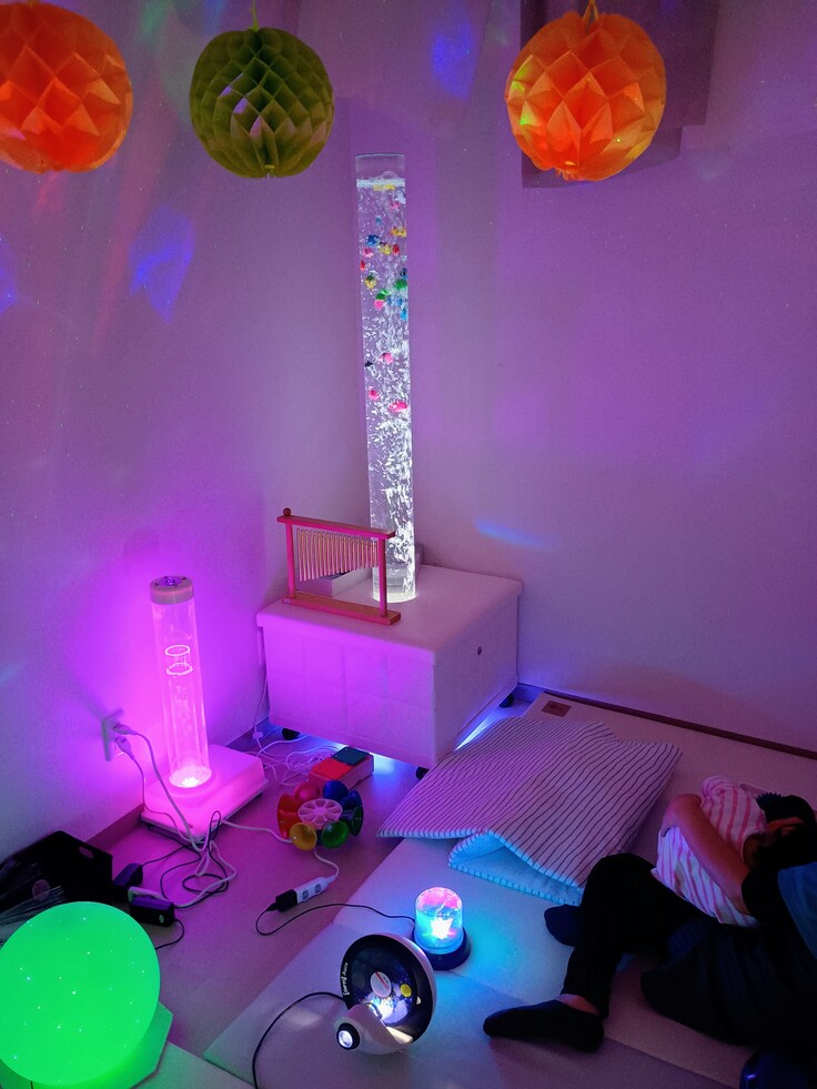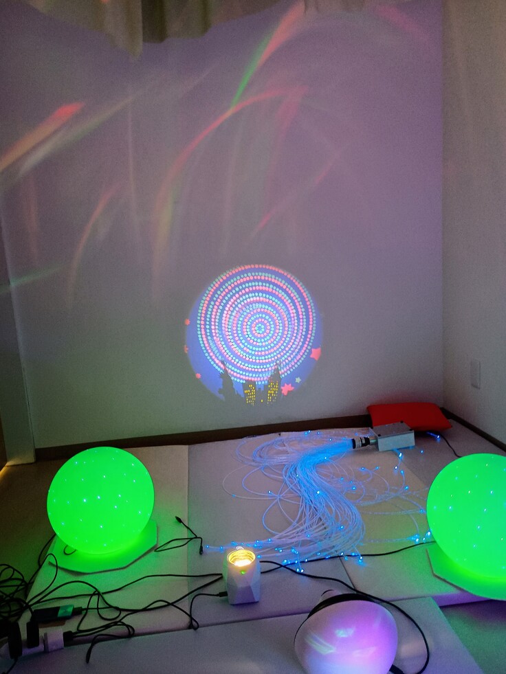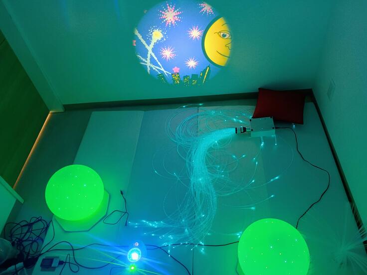 助成金を活用してパワーアップした多種多様なスヌーズレングッズが、皆さんをお迎えいたします!