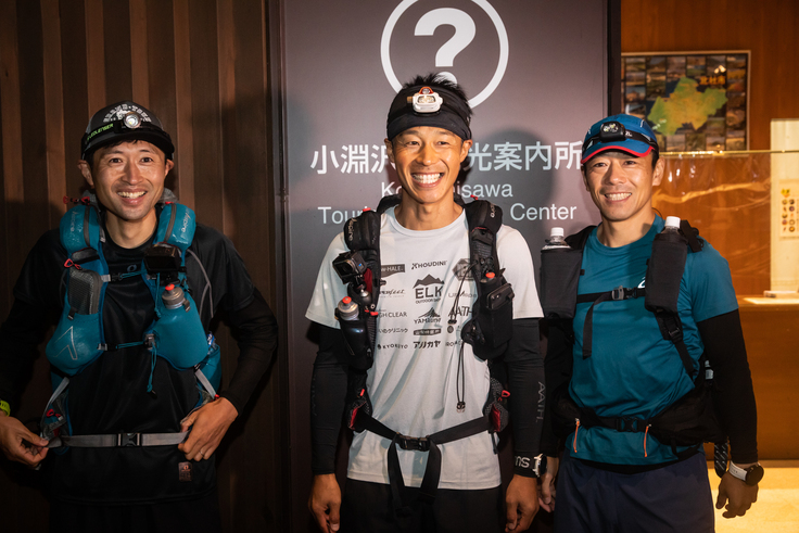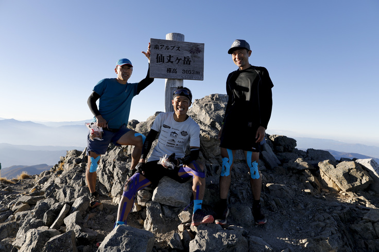 そこをまずは自分の仲のよい選手の中で、ロングトレイルがとても好きであろうメンバーに声をかけてみました。15名ほどが集まり、みんなで280㎞を5日間かけてぐるりとしたのです。2020年と違うところは、夜しっかりご飯を食べて、温泉があるところでは入り、しっかり寝る、こと。これが、最高によくて、幸福感に包まれたわけです。みんなでひたすら走って歩いて、しゃべって、食べて、お風呂入って、寝る。これ以外は何もありません。その空間を全力で楽しむだけの5日間。まさにトレイル旅行とでもいいましょうか。体よりも喉がまず痛くなります(笑)。私自身こんな経験をしたことなかったです。長い日では、朝4時から夜9時までひたすらみんなで歩く。圧倒的な景色と、普段会えない仲間との会話により17時間行動も気になりませんでした。終わってほしくない時間でしたね。