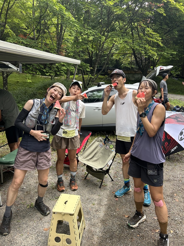 7月24日には、甲斐国ロングトレイルの試走イベントも行いました。総勢11名のみなさんで、起点となる韮崎の蛍雪寮から、甲府市のマウントピア黒平まで行ってみました。当日はとても暑く、サポートの力も借りながらですが、全員辿り着き、美味しいスイカとそうめんをいただきました。甲斐国ロングトレイルは、山はみんなで汗かいて頑張って歩いて、麓に降りてきて笑いながら食事をいただく、というのも大きな魅力の一つです。そのギャップがいいのですね。