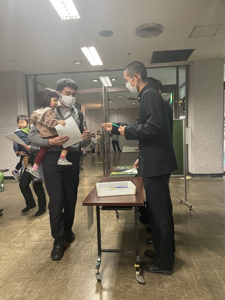 初戦の社高校戦について、来場者の皆様に応援のお願いする時間をいただき、野球部新3年相川くんが挨拶しました。