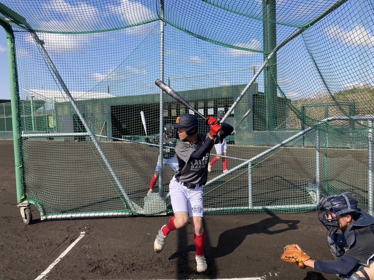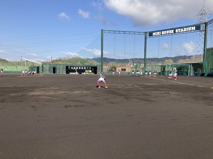 気持ちいい青空の中、明日の初戦にむけて練習しています。練習会場は三重県伊賀市のミキハウスさんのグラウンドをお借りしています。