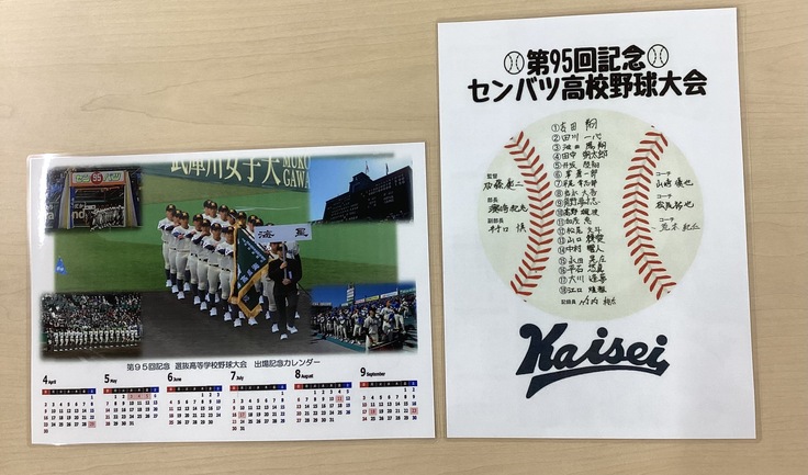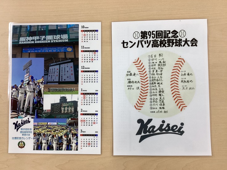 ※カレンダーの裏面に指導スタッフ、ベンチ入りメンバーが名前を書いています。