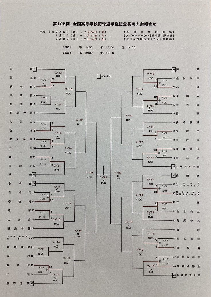 (長崎県高等学校野球連盟HP)※7月11日18時30分更新