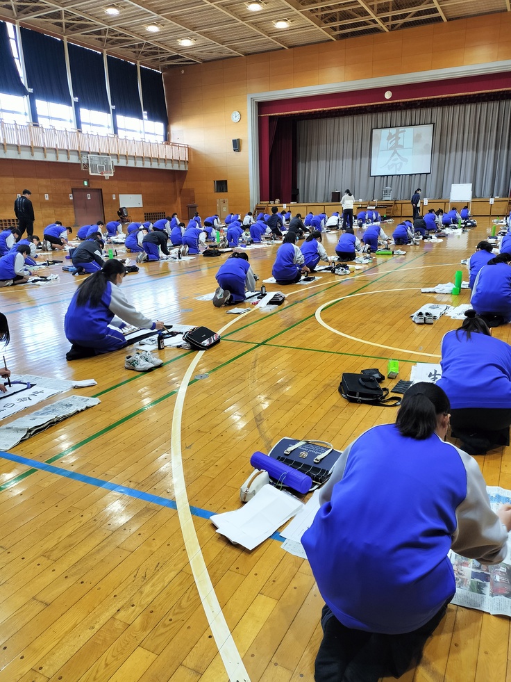11月末より、地域の学校では体育館にストーブがたかれ、書初め練習が始まります。