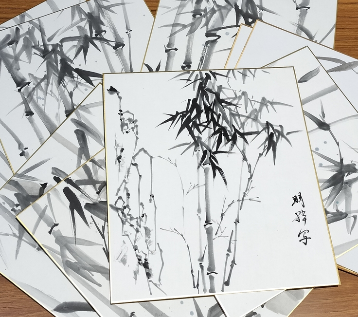 今回は私が30年描き続けている竹画をリターンにしました。写真は練習した墨竹画です。少しでも師匠に近づけるようこれからも精進してまいります。