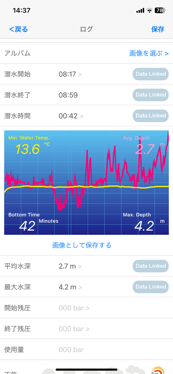 ところが今年3月15日に潜ったときは13.6℃もありました。