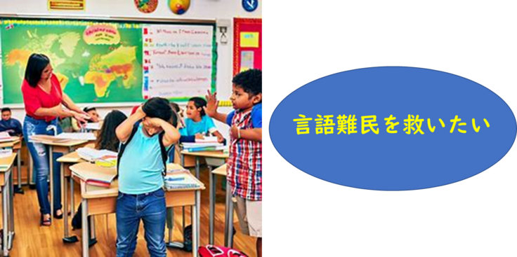- 学業や就労においても言語はコミュニケーションの基礎であり重要な要素です。生活する国や地域が変わり使用する言語も変わったものの、必要な支援を受けることができず、その言語の使用が不自由な状態に置かれている言語難民が世界には大勢います。その中でも特に、教育を受ける段階にある小中学生と高校生は、「言語難民」の立場に置かれると大きな影響を受けることになります。このような言語難民を救済するためにも異言語間コミュニケーションを支援するツールが望まれます。