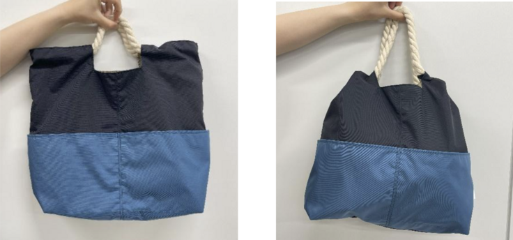 持ち手の部分を絞ると、巾着型のシルエットを楽しむことができます。