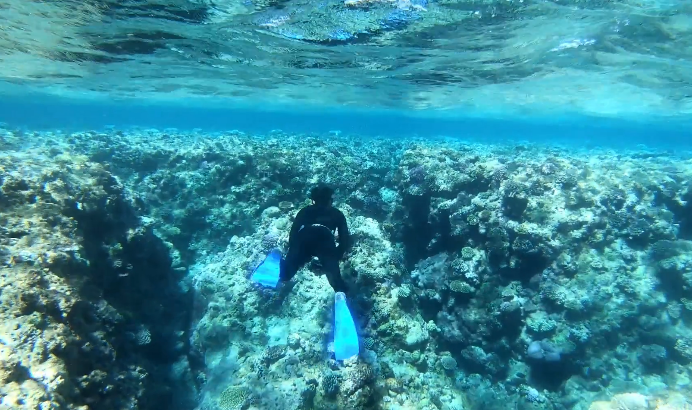 現地では、大きなものだと約4mのテーブルサンゴや、約1.8mまで育ったウミウチワなど、とても大きなサンゴの仲間を目撃しました。