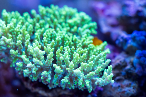 そうですね。一部のサンゴは蛍光色にパーっと光りますね。サンゴは「蛍光タンパク」というタンパク質を体に持っていて、それが青い光に反応して蛍光色を発します。