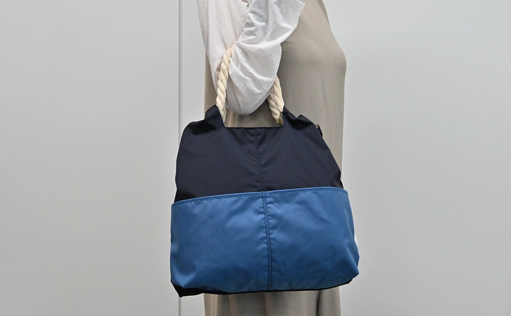 リサイクル生地を使用し制作したバッグもあります。使い勝手とかも結構意識して作っていて、中にたくさん入るのでおススメです。