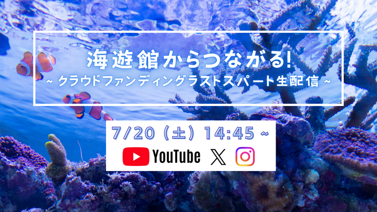 本日は、タイトルの通りYouTube・X・Instagram同時生配信「海遊館からつながる!〜クラウドファンディングラストスパート生配信〜」を実施することが決定いたしましたので、そのお知らせです。