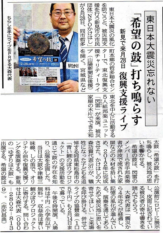そのような中、後援をして下さっている山陽新聞さんが、1月と2月の2回も掲載をしてくださいました。