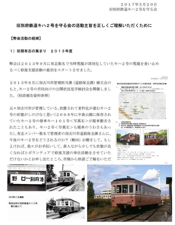 旧別府鉄道キハ2号を守る会の活動を正しく理解いただくために