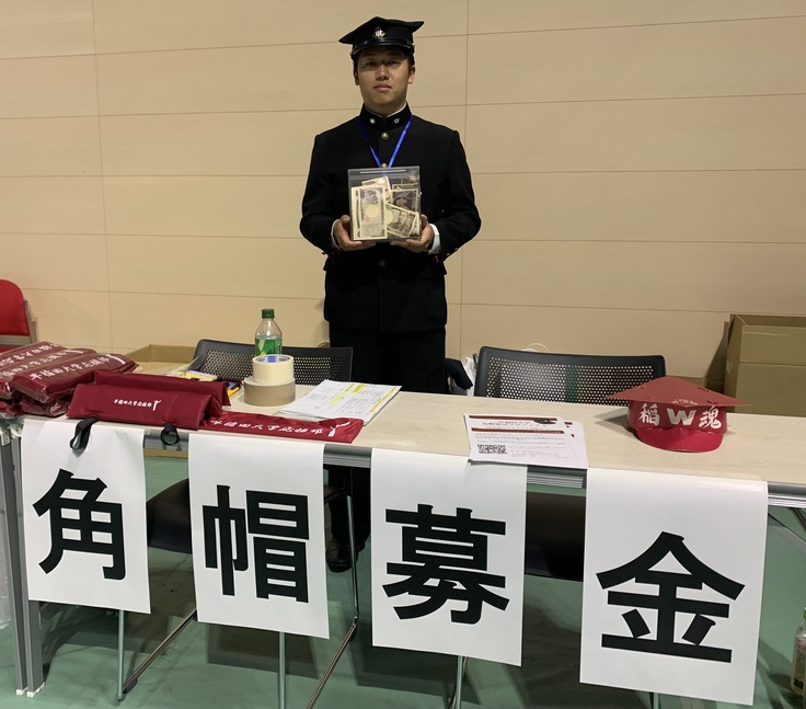 会場では「角帽復活プロジェクト」募金ブースを設置!