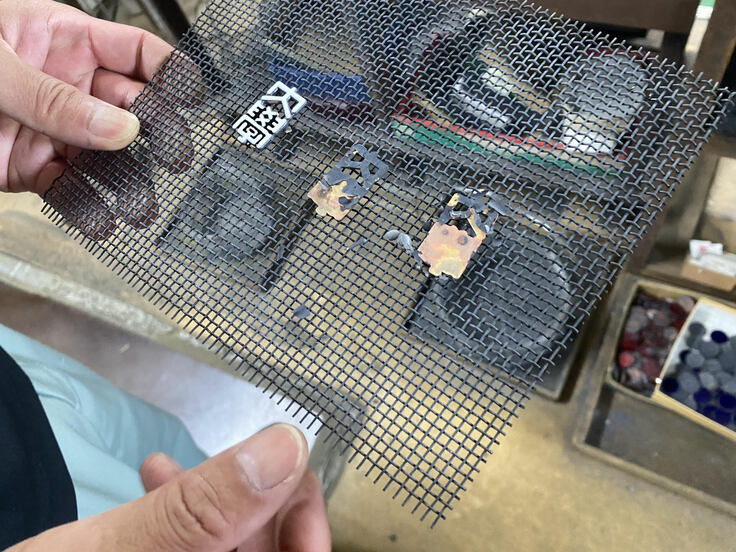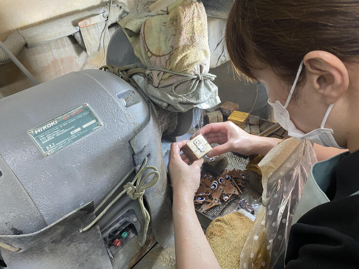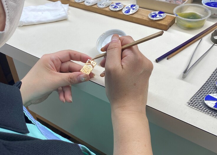 すべての作業工程を勉強しながら徽章づくりに取り組んでいます。