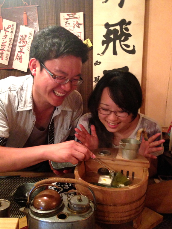これからの寒い季節に向けてなら、江戸後期の骨董品である携行用のお燗器でぬる燗をつけ、檜風呂そのものである桶でいただく湯豆腐と、桐箱仕込みの焼き海苔を合わせる「大江戸三点セット」がイチオシです。いずれも炭火を起こして使用する道具で、大人のままごとに興じていただきます。