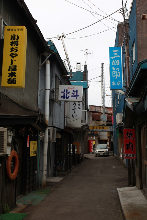 飲み屋さんの看板がたくさんありますね。でも、看板の見えている写真の店で営業しているのは素敵なマダムのスナック「とんとん」さんと、小樽でも指折りの老舗居酒屋「かすべ」さんの二軒だけです。少し寂しい感じがします。