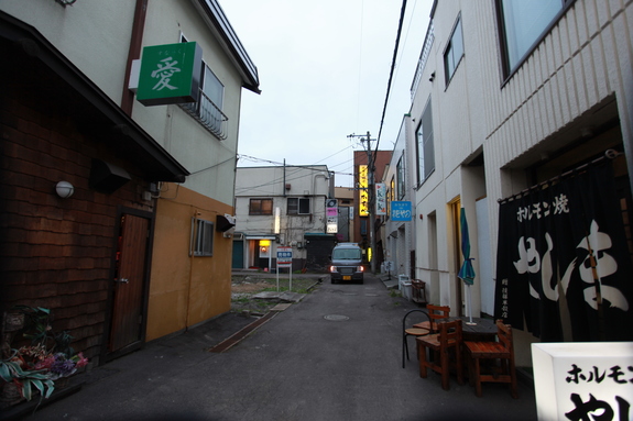 焼酎専門バー「玄衛(くろえ)」さん、カラオケのスナック「花園」さんと「アラウンド」さん。お向かいにもスナック「愛」さん、そして、いつもいつも賑わっているホルモン焼きの繁盛店「やしま」さんがあります。