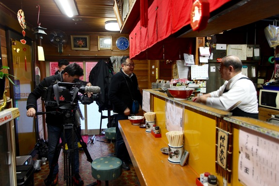 お昼に小樽運河や堺町通などの観光名所の情景を撮影したロケ隊と、午後二時に花園の嵐山通りにあるラーメン店「龍王」さん前で待ち合わせを。