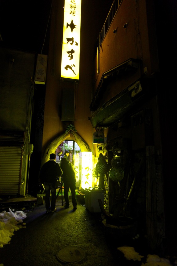 午後七時少し前、小樽の数ある居酒屋の中でも、その歴史のみならず異彩を放つ内外観が度肝を抜く「かすべ」さんへ。