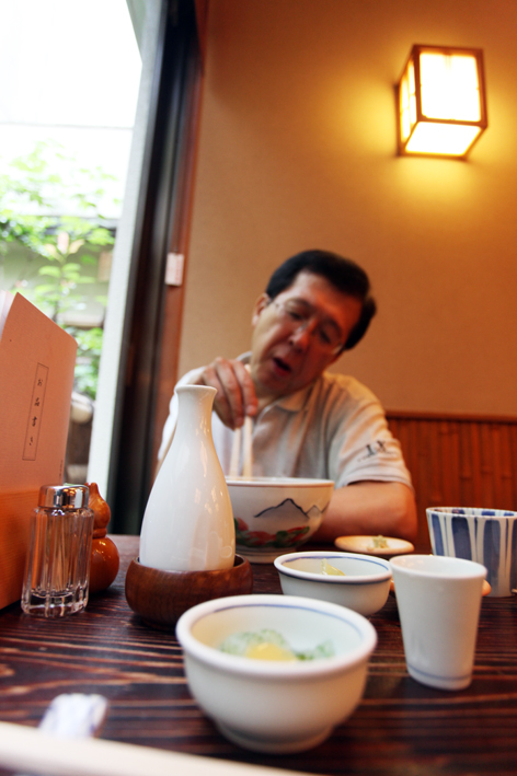 「ウチの師匠はね、本当はビール好きだったんだけどね、この店であるお客さんに『蕎麦屋だってえのに最初にビール飲む奴がいるのは野暮でいけませんやねえ』とか言われてから酒だけにしたみたいだな。