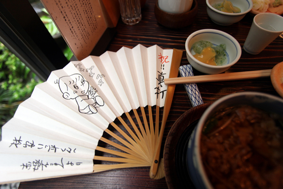 師匠の師匠、古今亭志ん朝さんが最も愛した日本橋室町の砂場で、八朝師匠が突然扇子を取り出した。